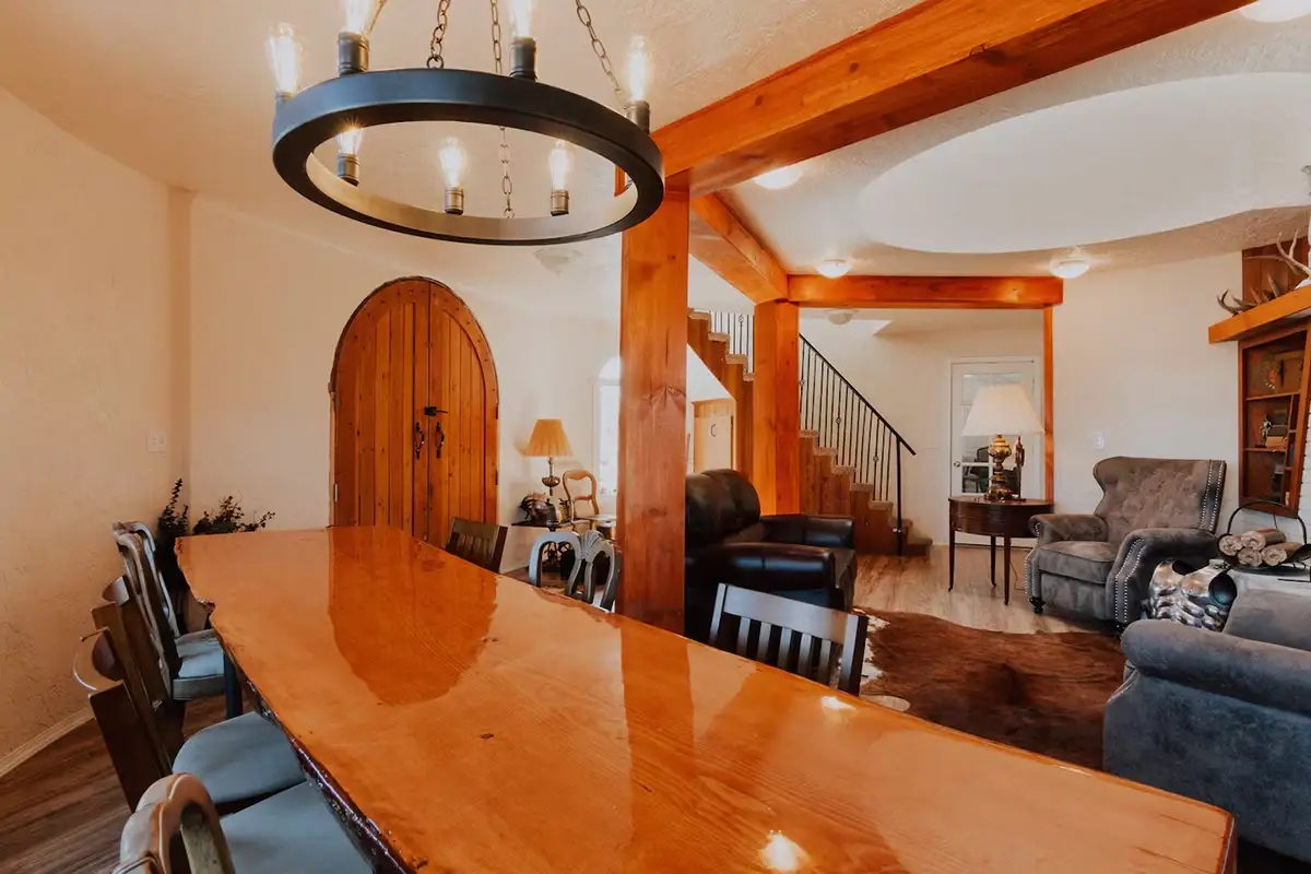 - Large wood dining table for shared meals