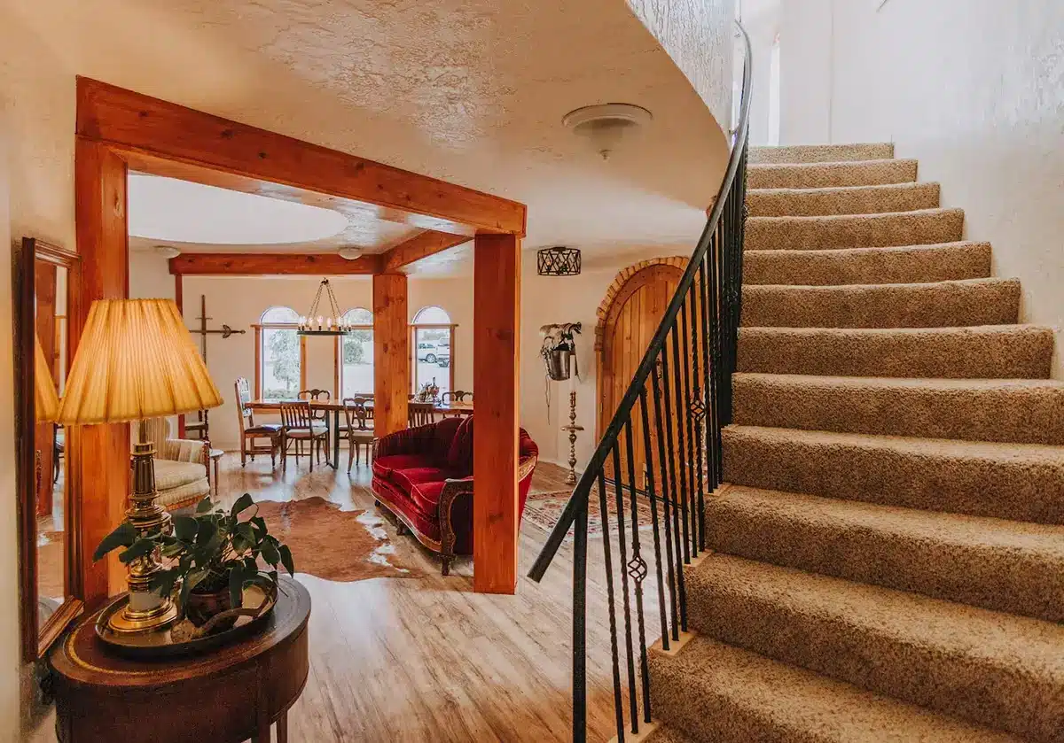 Subtle medieval elements throughout give the home its personality without sacrificing comfort.