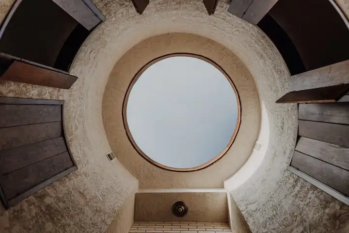- Round, silo-style architecture with curved walls