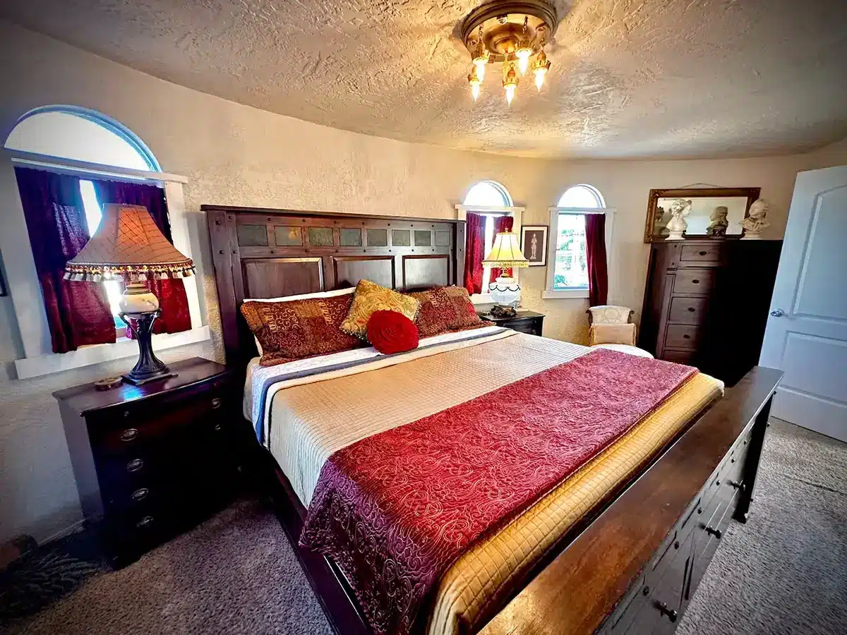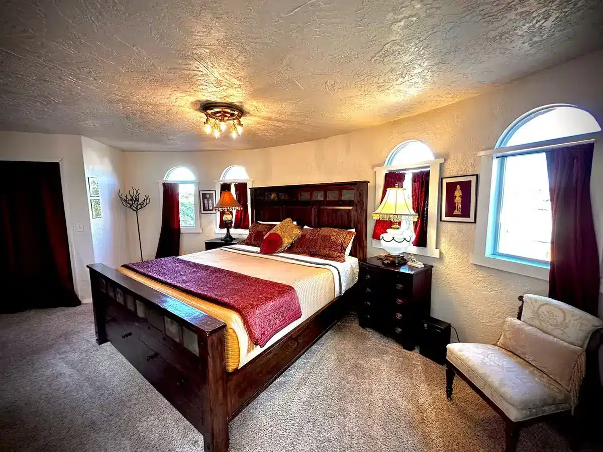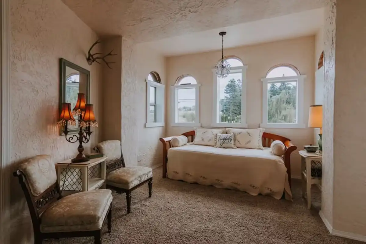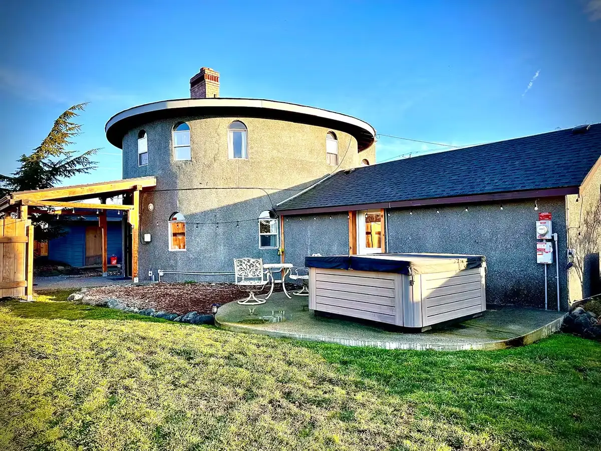 With curved walls, a grand central fireplace, and thoughtful medieval touches, this unique home blends character with comfort. Perfect for couples or small groups looking for something memorable, just minutes from Olympic National Park and Port Angeles nestled in quiet Sequim, Washington.