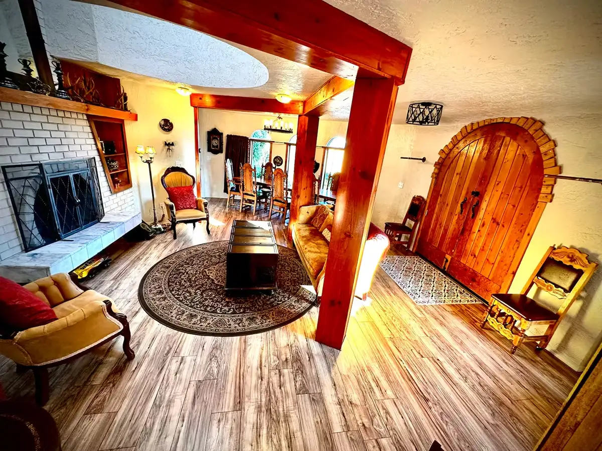 - Central fireplace anchoring the main living area