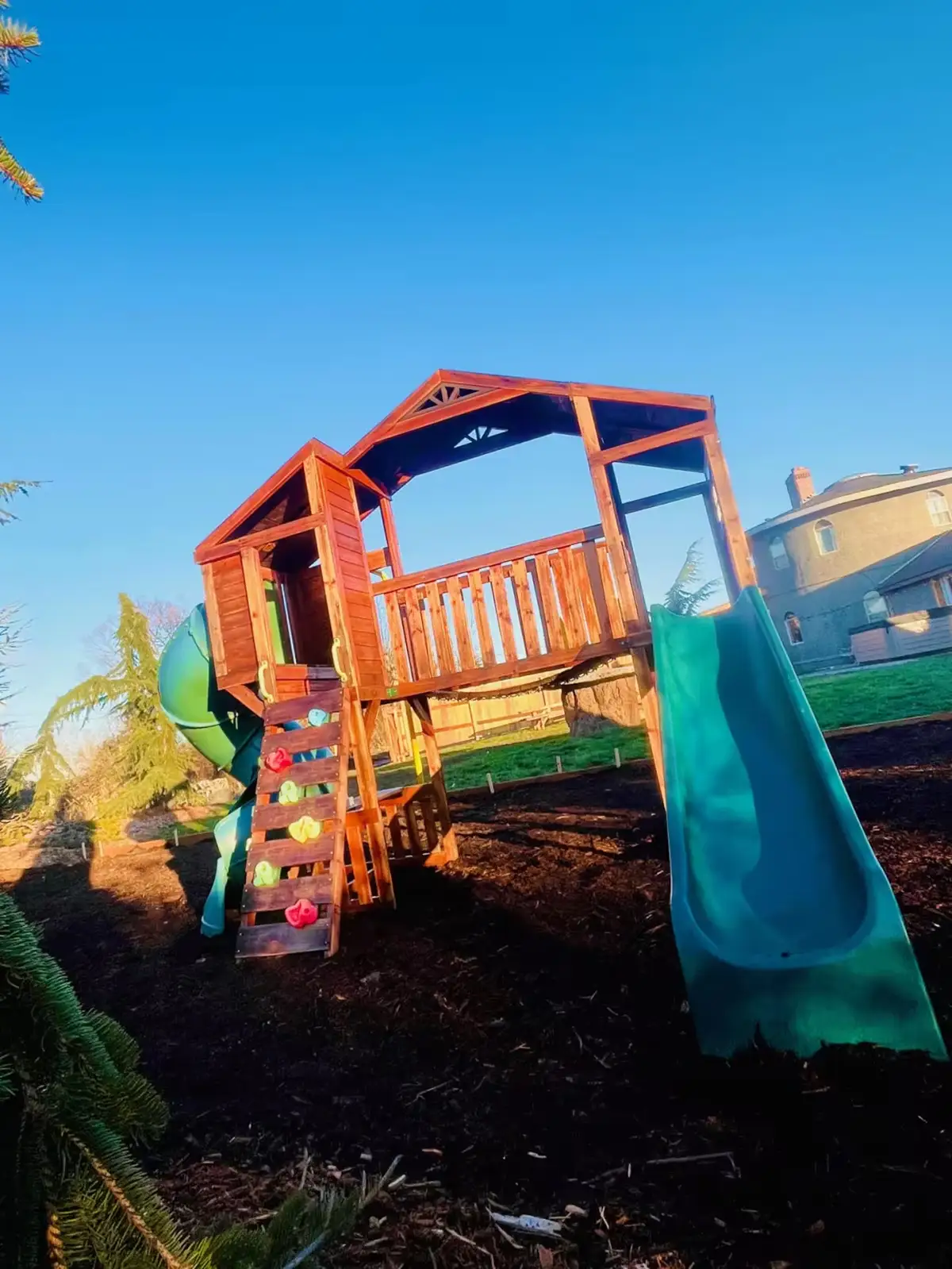 A fairytale experience for children with dress up clothes, castle toys, outdoor play gym and a large park a block away